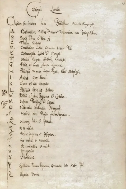 An autograph draft of an alphabetical catalogue of the library of the Brno physician Jakub Konrád Praetorius, which later became part of the library of Franz von Dietrichstein.
