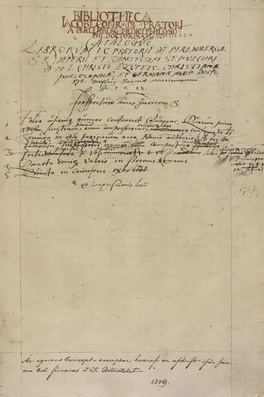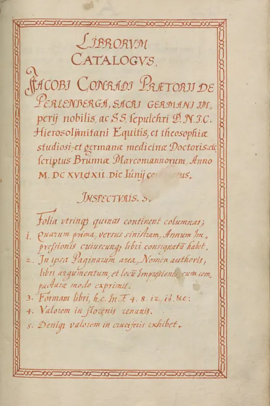 Catalogue of the Library of Jakub Konrád Praetorius of Perlenberg